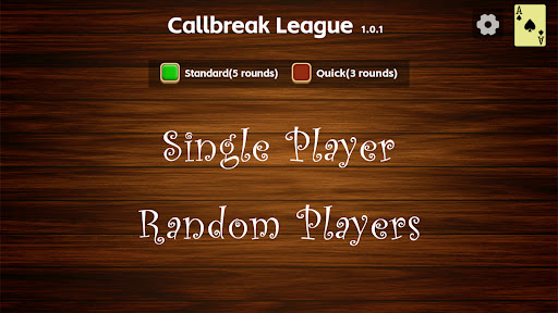 Callbreak is a multiplayer trick-taking card mobile game played by Four players on the table, with a standard fifty-two cards' deck. There're 3 rounds in a quick-mode mobile game and 5 rounds in a standard-mode game.